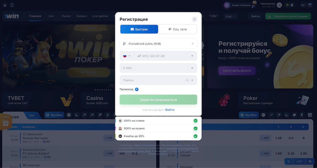 Создать аккаунт в БК 1вин легко и быстро — процесс занимает не более 15 минут. Регистрация доступна как на официальном сайте (или его зеркале), так и в мобильном приложении. Пользователям предлагается несколько удобных способов создания профиля: